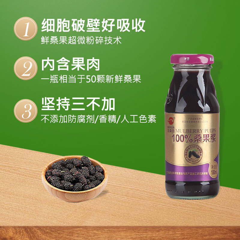 Guangdong Academy of Agricultural Sciences mulberry juice Baosangyuan mulberry fruit pulp with pulp 12 bottles gift box mulberry juice 2 boxes of mulberry juice
