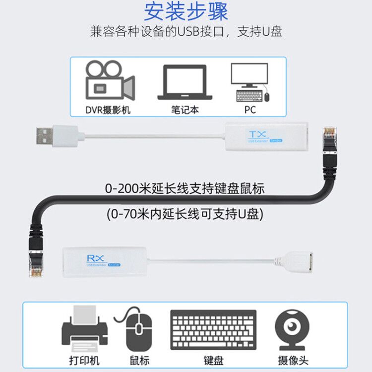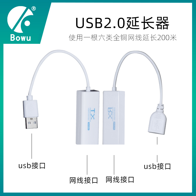 BOWU USB Extender 2 0 200m USB Signal amplifier USB extension cable USB to network cable (RJ45 interface)USB extender Keyboard mouse extension