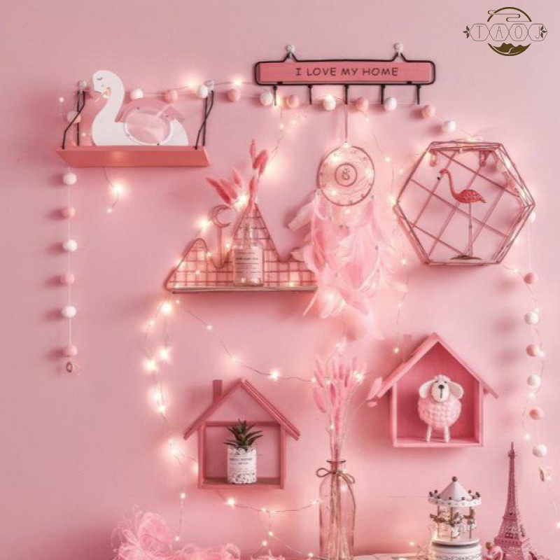 Small Number of Teenage Girl Powder Hooks Wooden shelves Small Number Mountain Moon Night Pink Shelf Hexagonal House Shelf Pink Sheep middle number King Fire Birds Wood Board Shelve number Girl Powder Hooks Iron House Pink