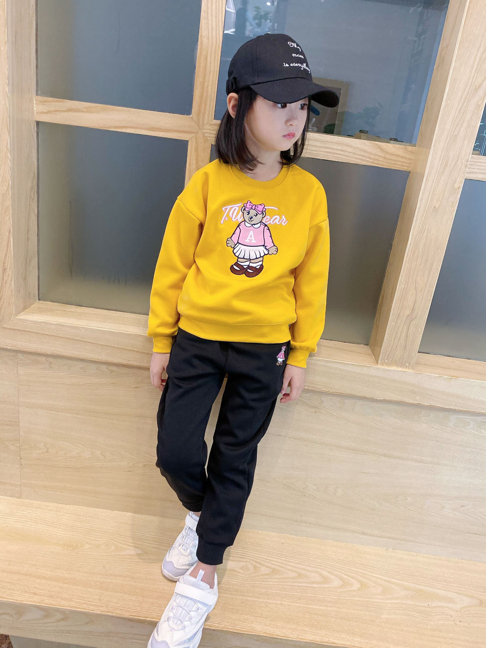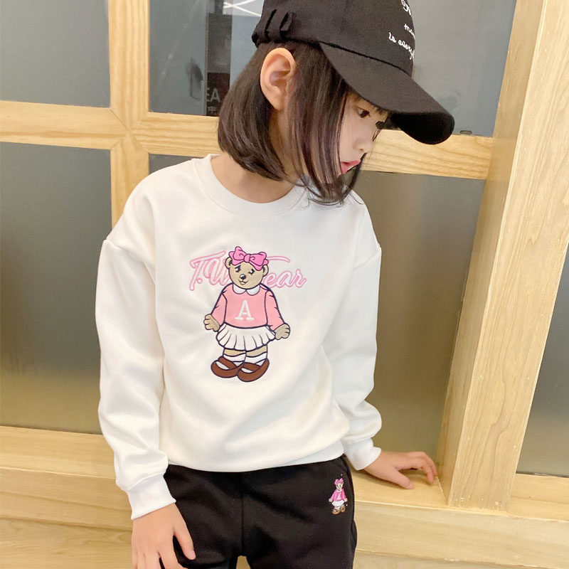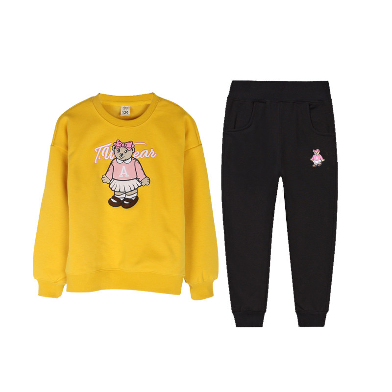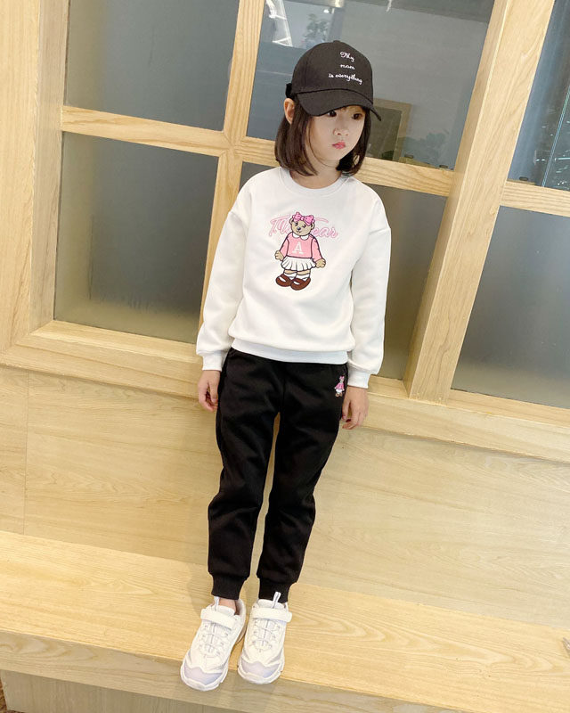 Autumn and winter girls thick T-shirt plus velvet suit up and down two-piece round collar without hat long sleeve baby shirt children's trousers Cotton