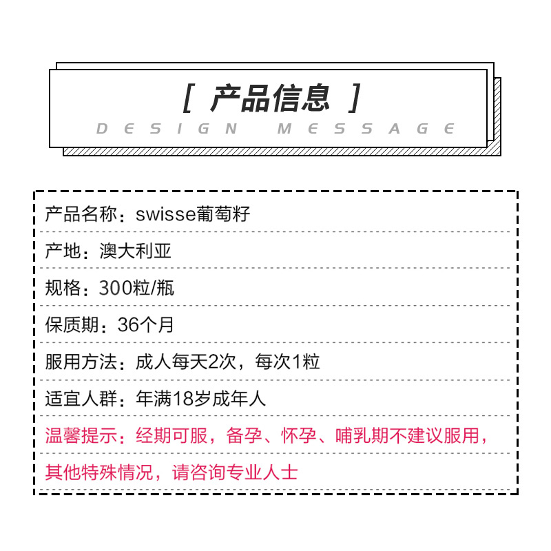 Australian Swisse Grape Seed Essence Extract 300 Grain Anthocyanin Hitch Collagen Essence 180 grain