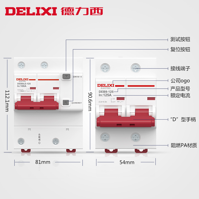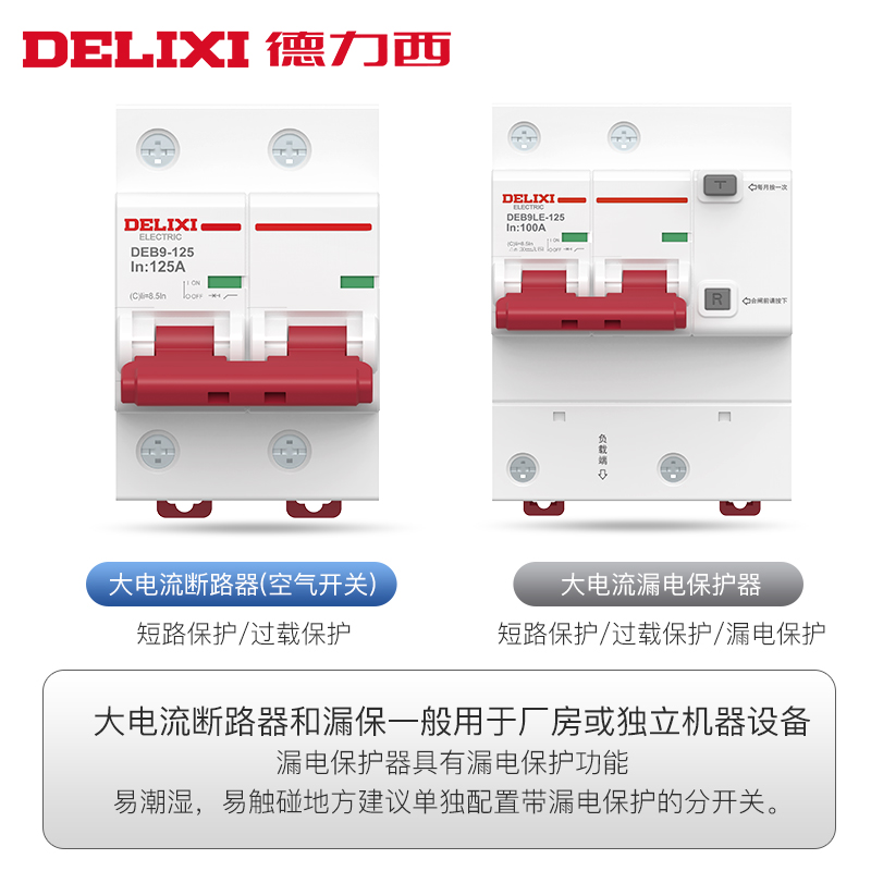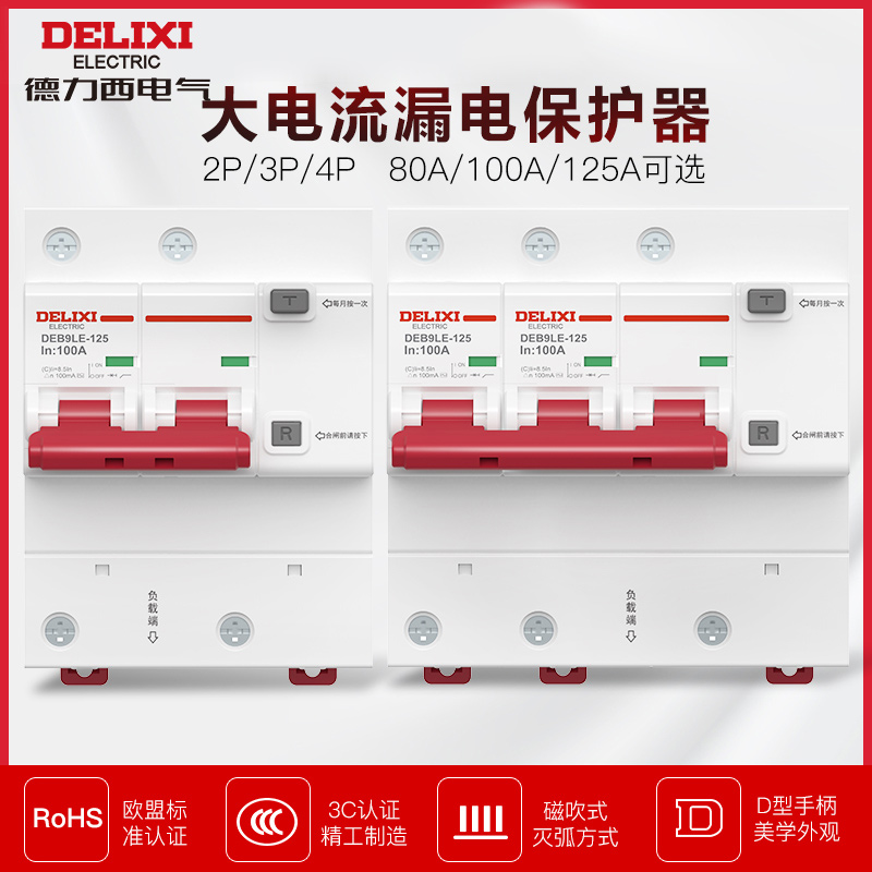 Delixi circuit breaker DEB9 high power 2P 3P 4P 100A 125A leakage protection open with leakage protector