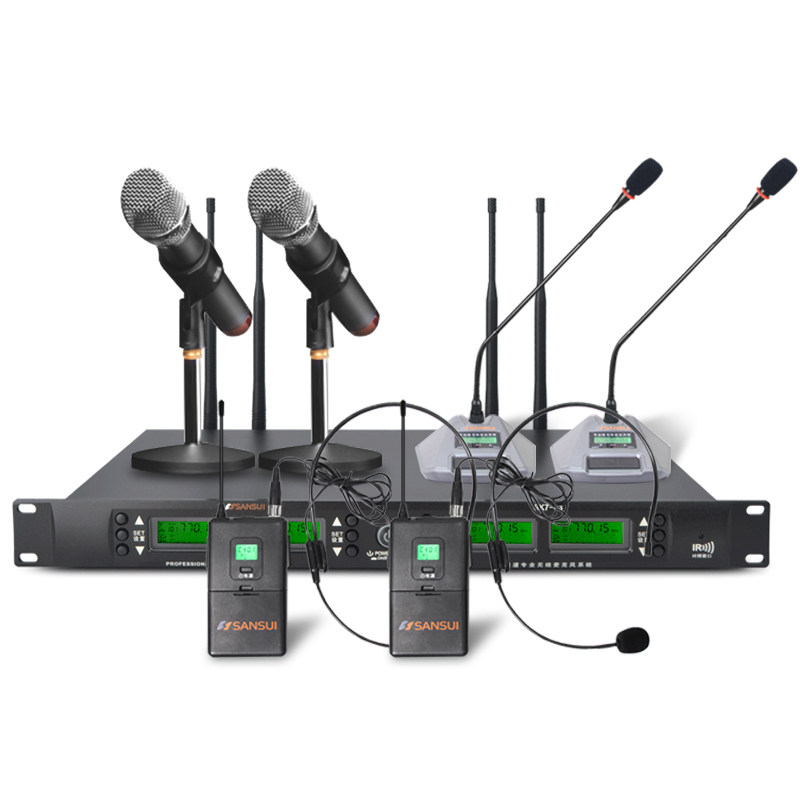 SK7-43 professional conference microphone drag four wireless handheld microphone U segment FM headset headset KTV karaok stage home singing K song K song universal tsunami scream