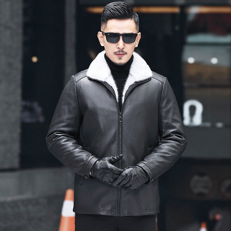 Gentry light and luxurious men's medium long version genuine leather fur coat fur integrated in youth mink leather jacket 2019