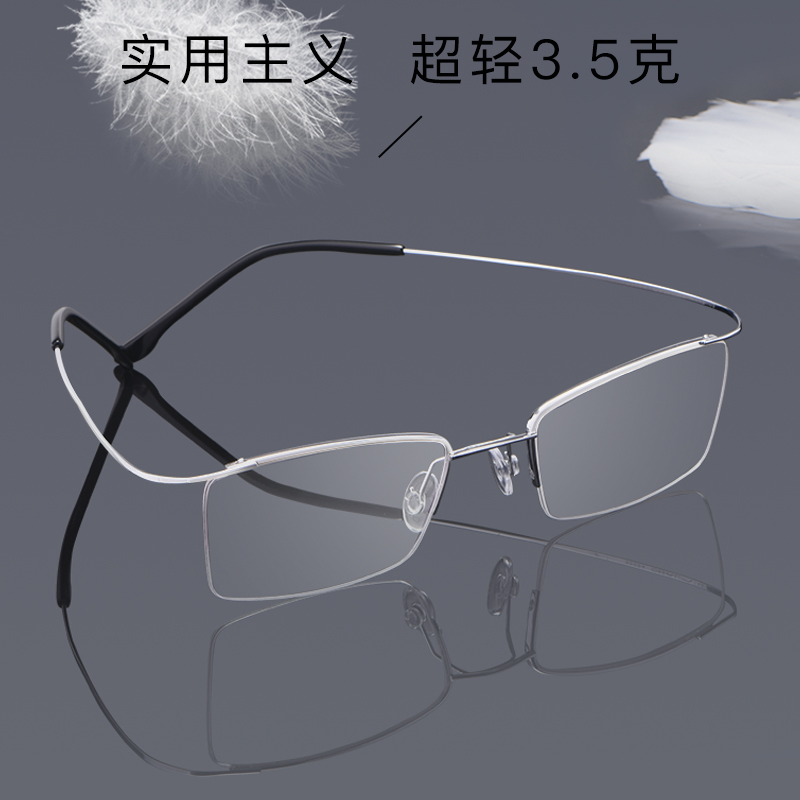 Business pure titanium myopia glasses men can be equipped with half-frame ultra-light comfortable thin-edge myopia glasses frame men's myopia glasses