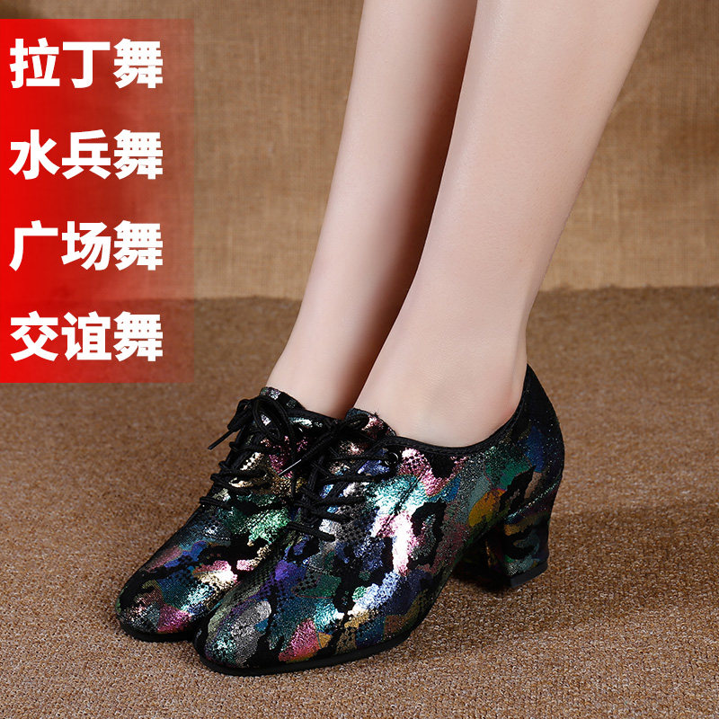 Latin dance teacher shoes leather adult women color sailor dance soft-soled square dance heel dance social dance shoes
