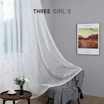 Nordic simple curtain elk embroidered yarn children's room gauze bedroom living room white embroidered yarn modern style custom gauze curtain
