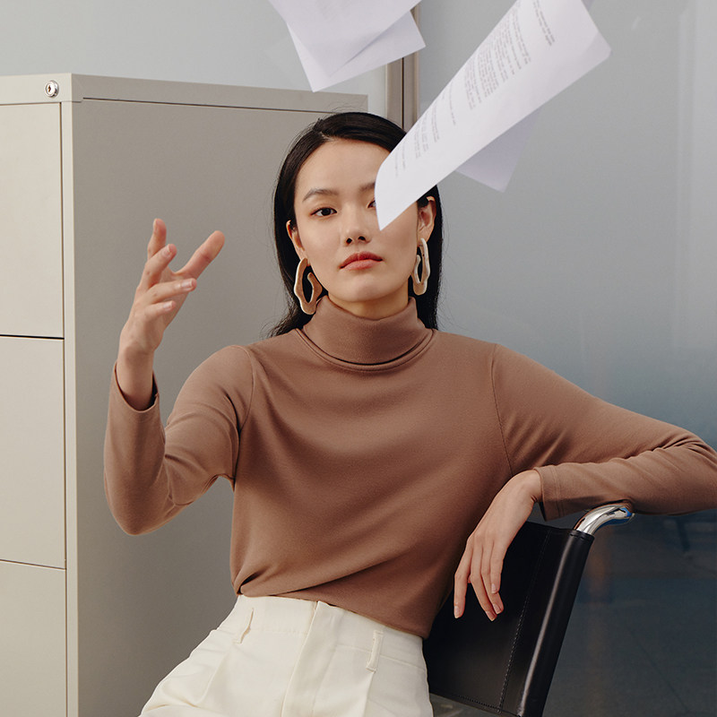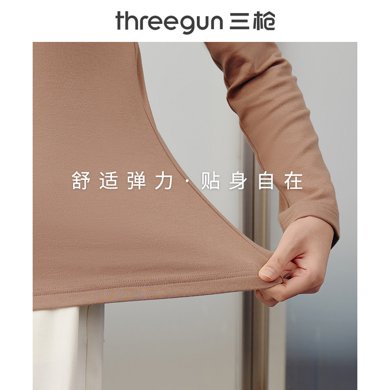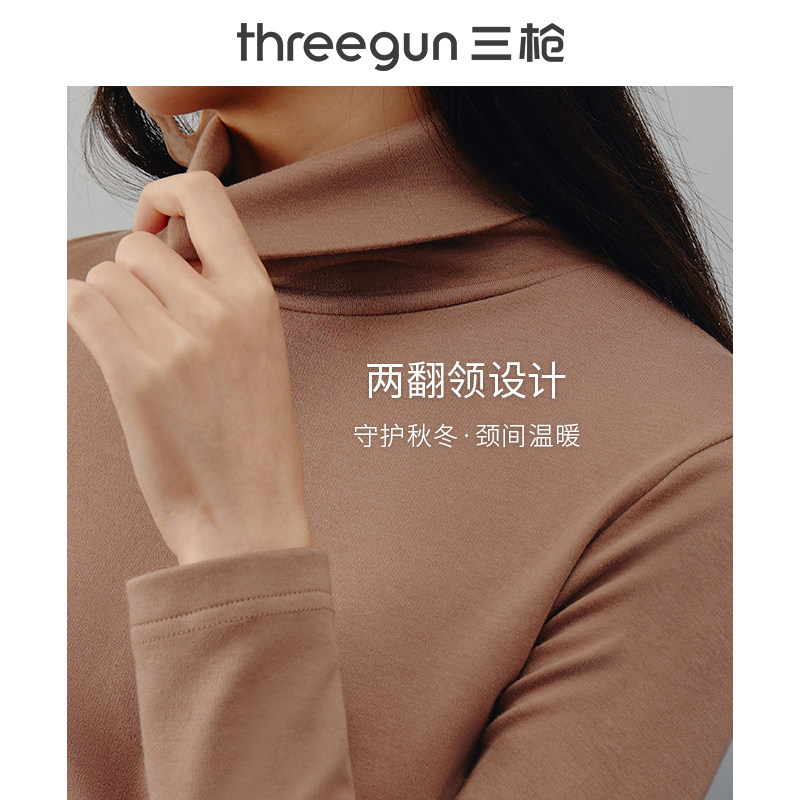 Three-shot base shirt women's spring smooth cotton two lapel high-neck underwear casual light long-sleeved warm top