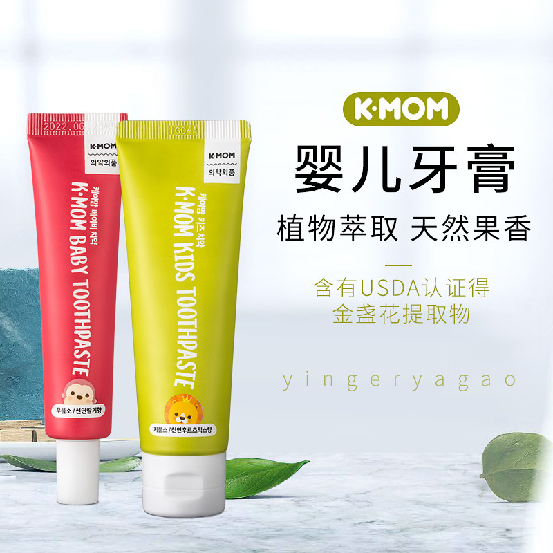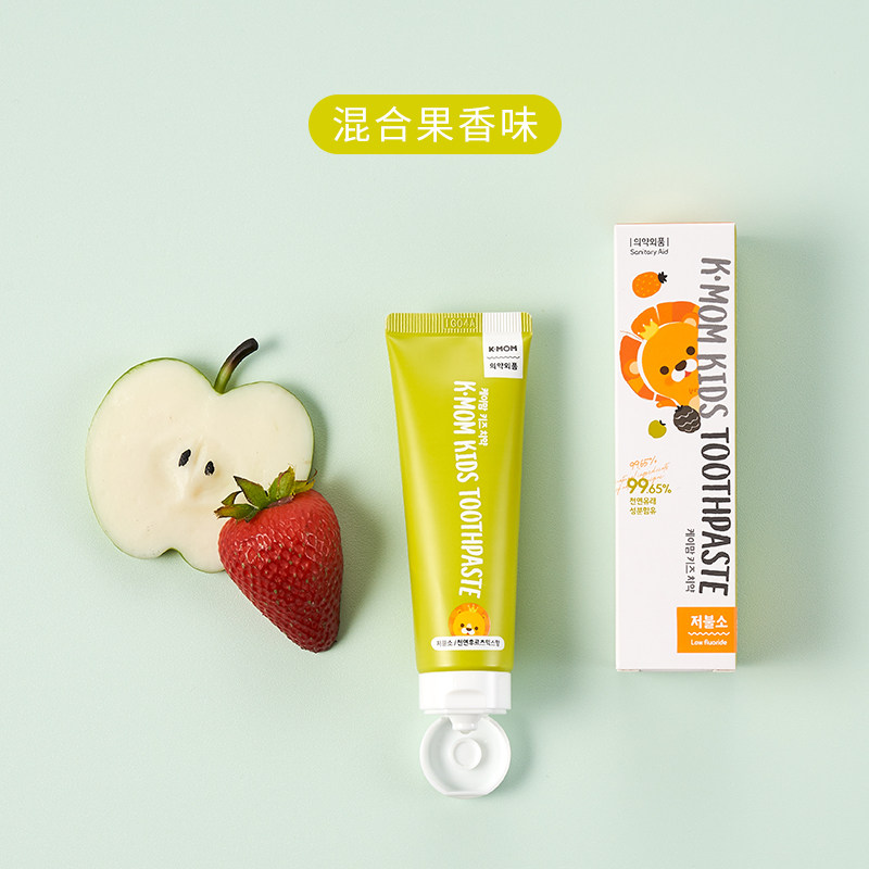 Korea K-MOM toothpaste Primary school children's toothpaste Tooth decay prevention Tooth removal yellow and black stains Tooth replacement period Fluorine-free low fluorine
