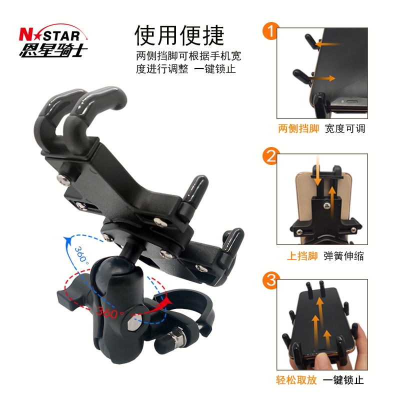 N-STAR Knight motorcycle mobile phone holder All-metal universal mobile phone holder Multi-purpose aluminum alloy motorcycle riding
