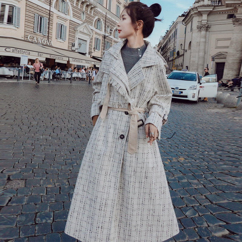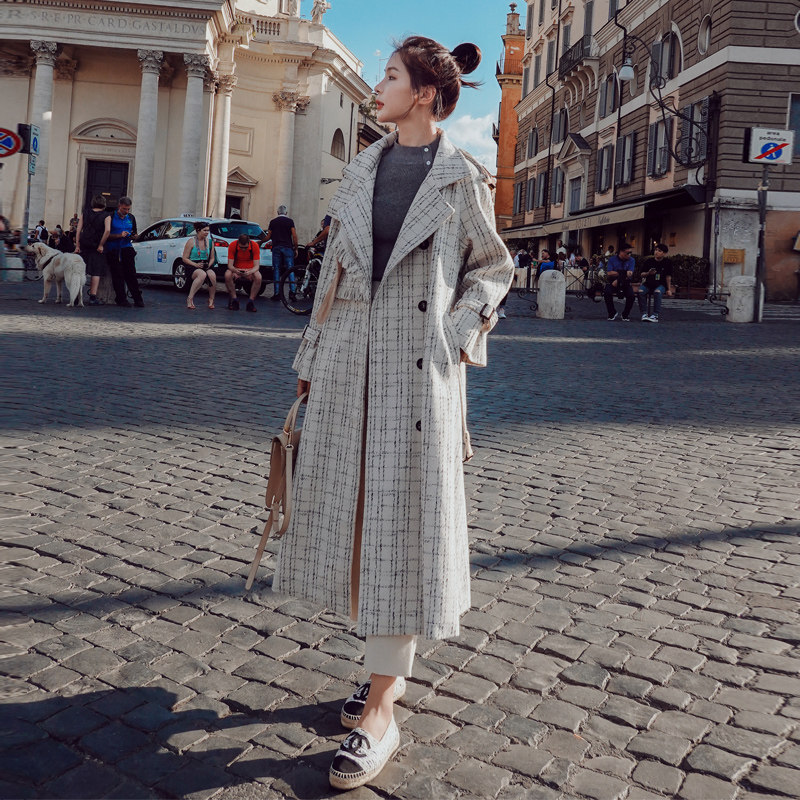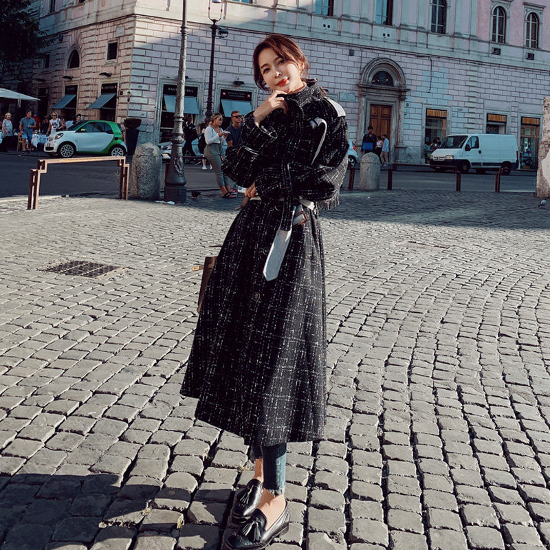 Small woolen coat women's mid-length version 2022 winter new loose and popular plaid over-the-knee woolen coat trend