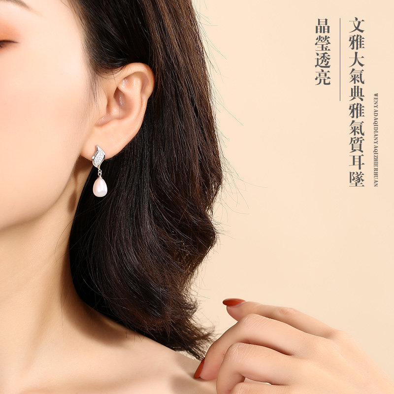 Sterling silver pearl earrings women's 2019 new fashion earrings high-end French drop earrings net red temperament earrings send girlfriend