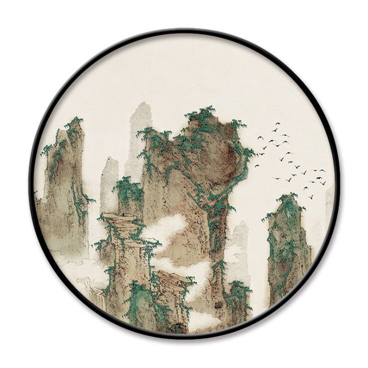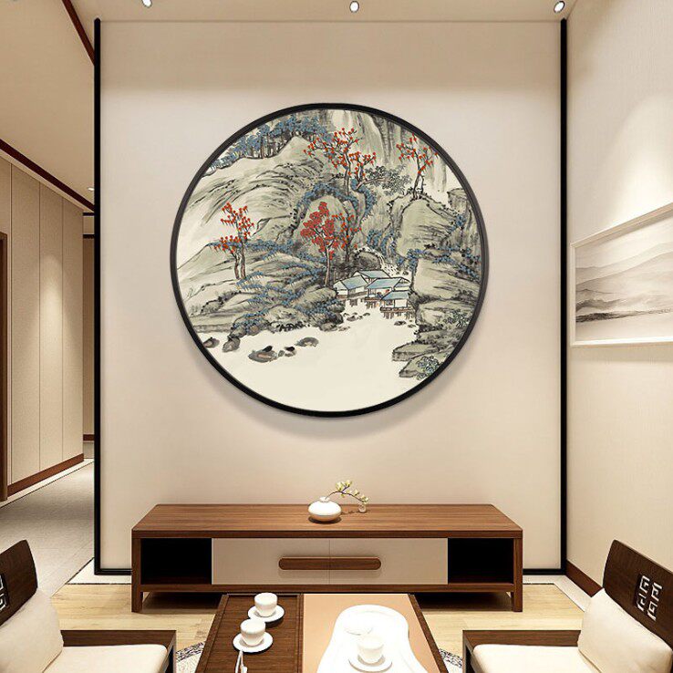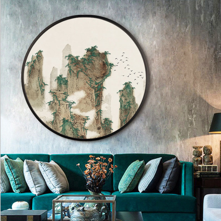New Chinese circular living room dining room solid nail landscape painting porch decoration painting feng shui fortune hanging