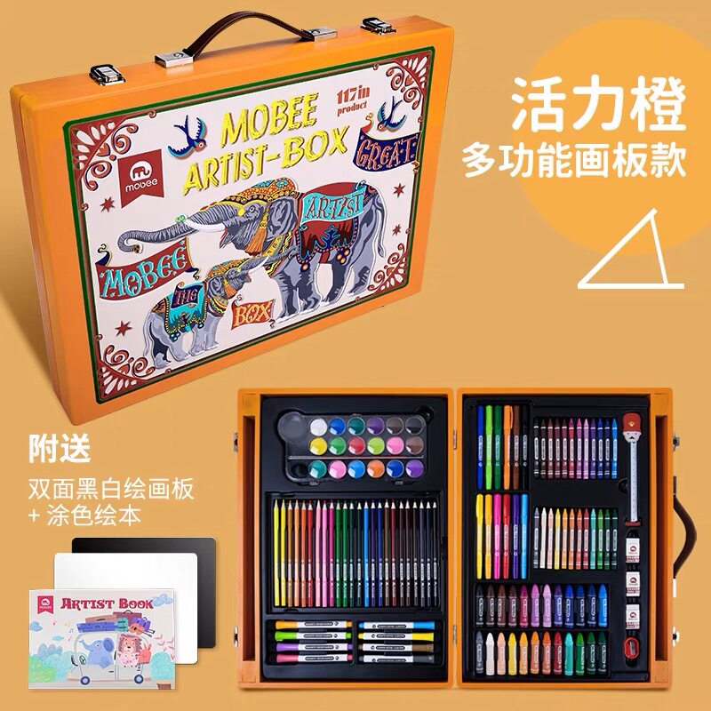 mobee children's painting tool color pen set elementary school students art brush drawing gift box girls birthday gift