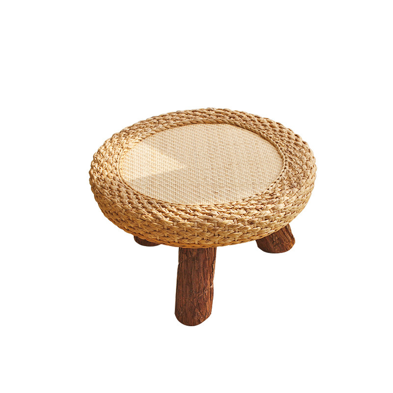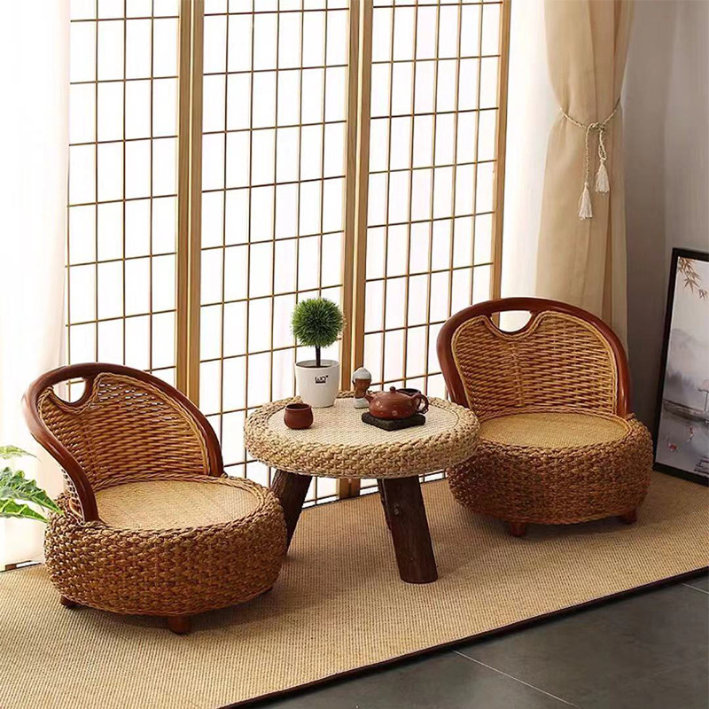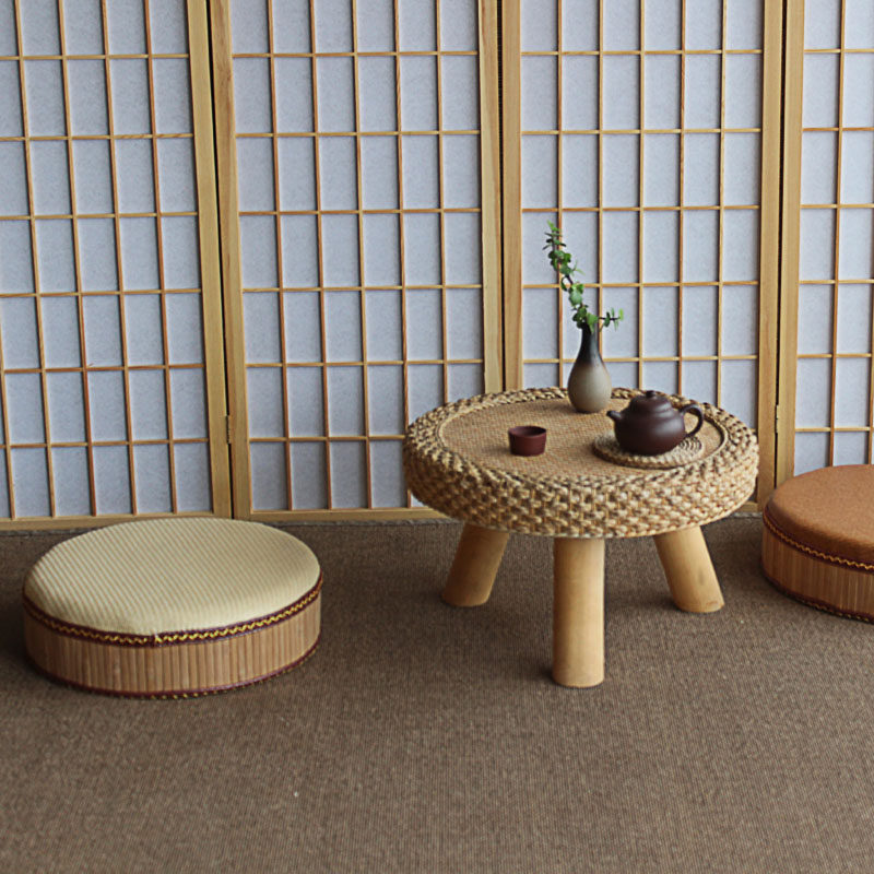 Rattan table small tea table New Chinese style minimalist Tatami Terrace Mini Round Kang Few Zen Solid Wood Flowers a few short tables