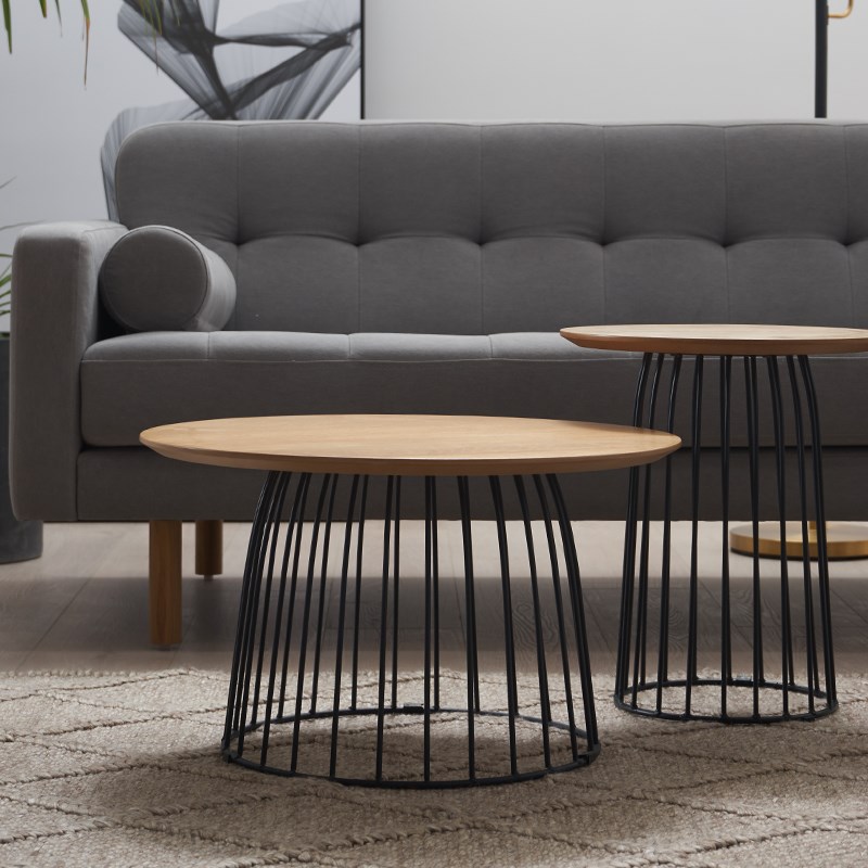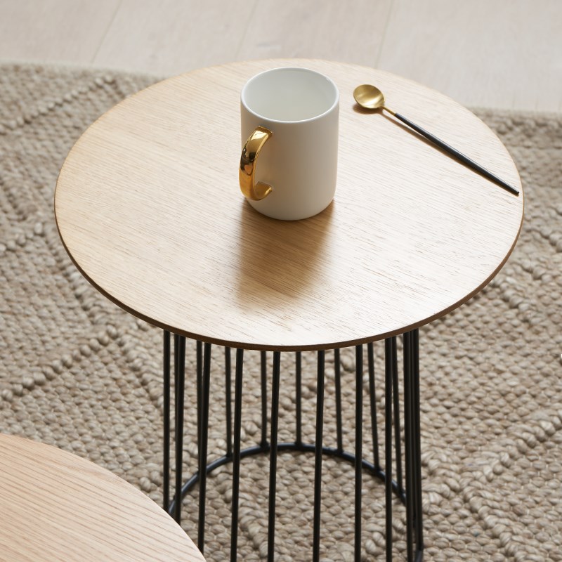 Several Creative Tea Tables of Nordic Iron Tea Several Round Solid Wood Modern Simple Small House Living Room