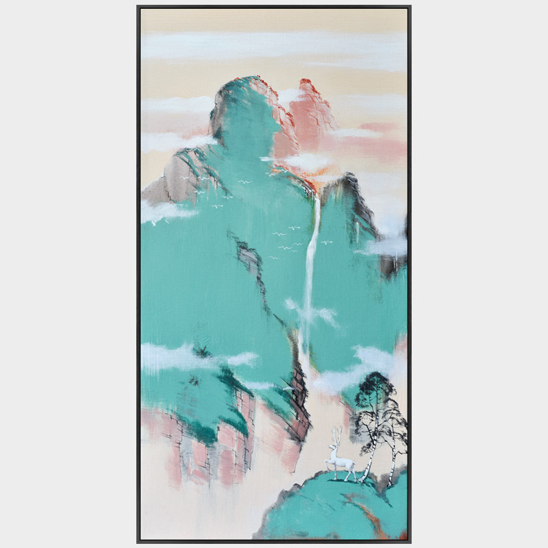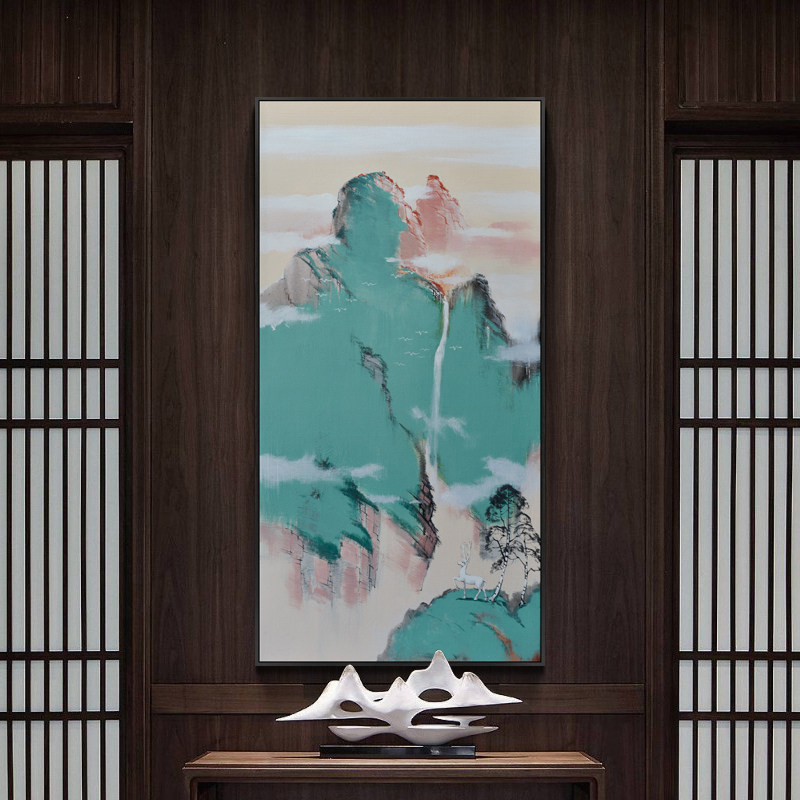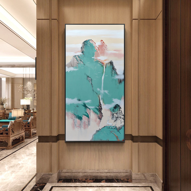 Hand-painted landscape oil painting Chinese style large living room decorative painting vertical corridor hanging painting home porch decorative painting