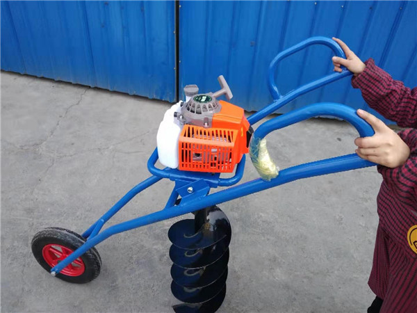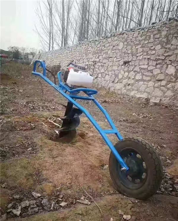 Single-wheel ground drill hand-push single tree planting drill hole machine fruit tree fertilizing and cohorting machine cement pole beating pit drilling hole bracket