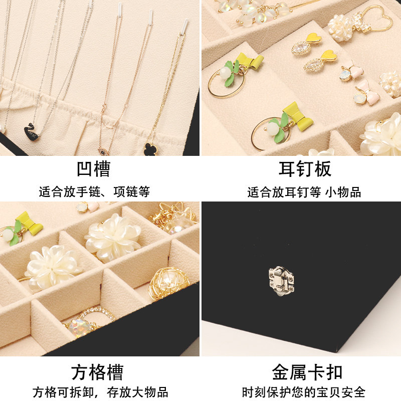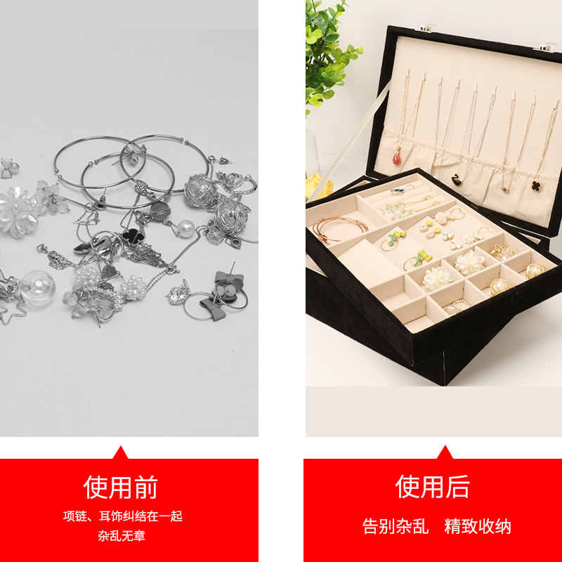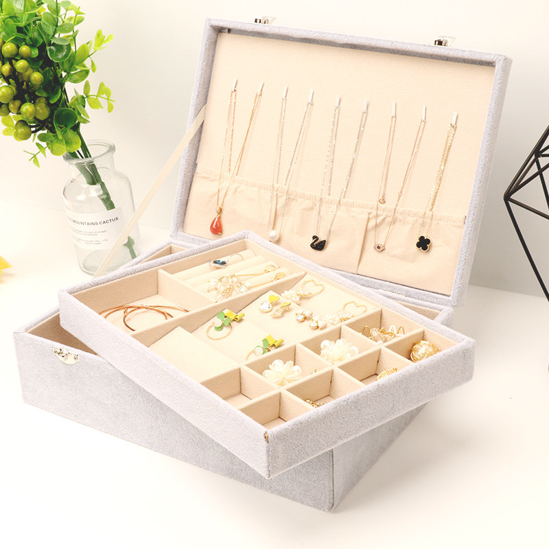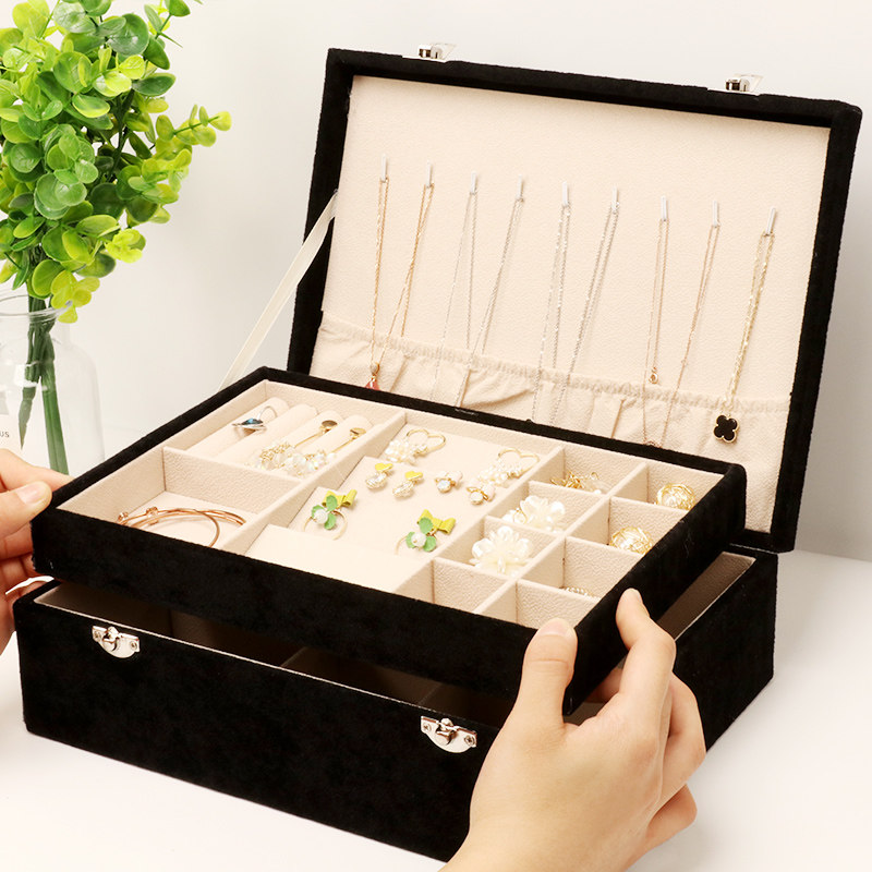 Black double flannel jewelry storage box pink double flannel jewelry storage box gray double flannel jewelry storage box Black double leather jewelry storage box pink double leather jewelry storage box