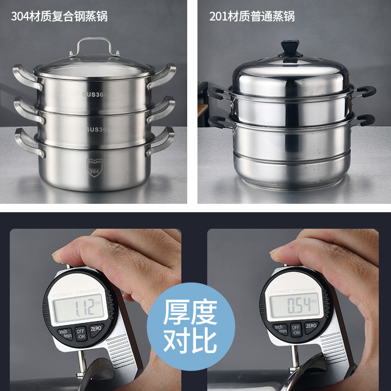 Steamer household cooking three-layer thickened 304 stainless steel steamed bread steamer gas stove induction cooker universal 30cm