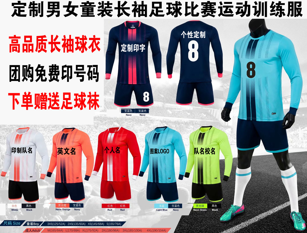 Customized autumn and winter boys' long-sleeved football uniforms youth training camp football training uniforms student game jerseys