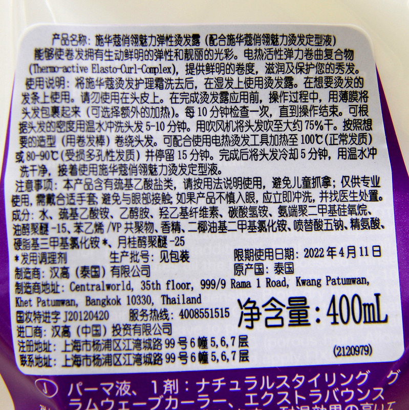 Original imported Schwarzkopf Qiao Ling moisturizing charm elastic perm dew 400ml hot potion ceramic hot softening