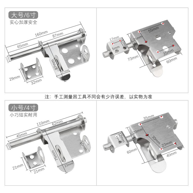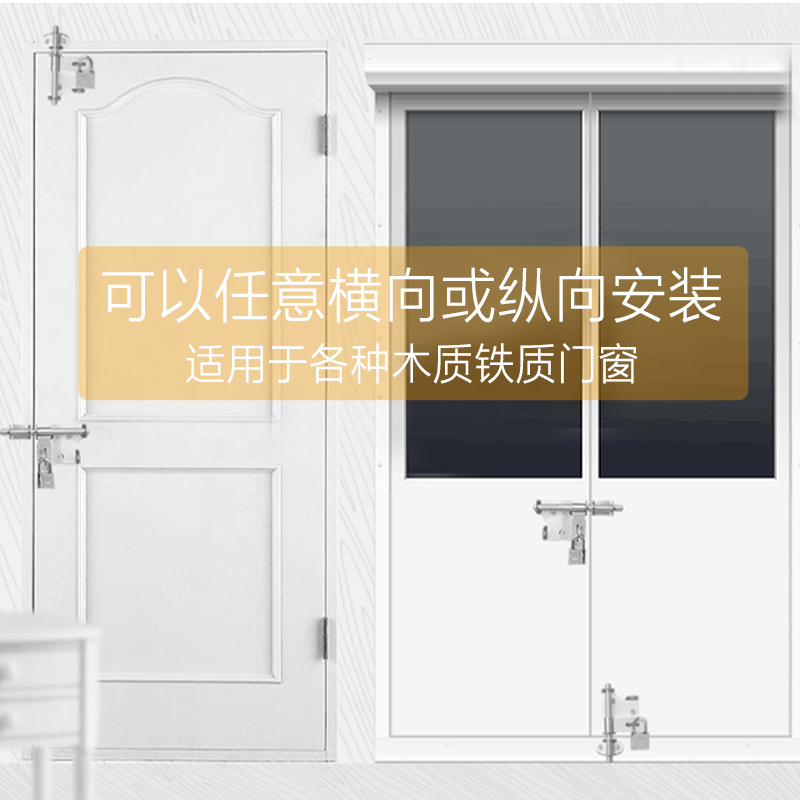 Thick stainless steel door latch bolt padlock left and right latch passage gate warehouse anti-theft iron door buckle lock latch