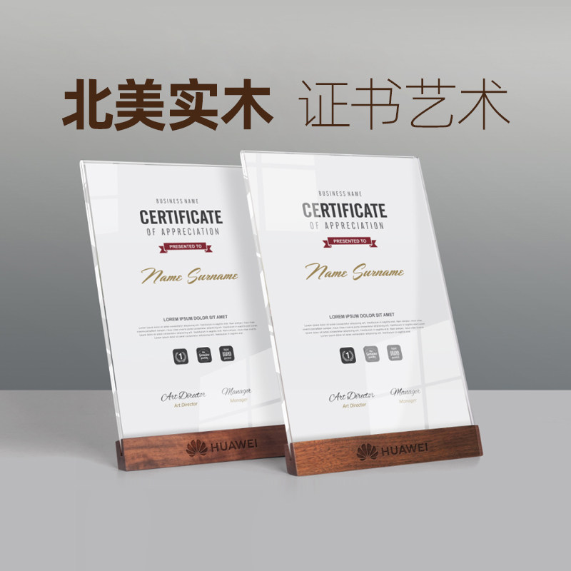 Exquisite solid wood certificate box acrylic authorization letter log honor certificate box award graduation graduation commendation award table card card modern document frame desktop certificate table set custom