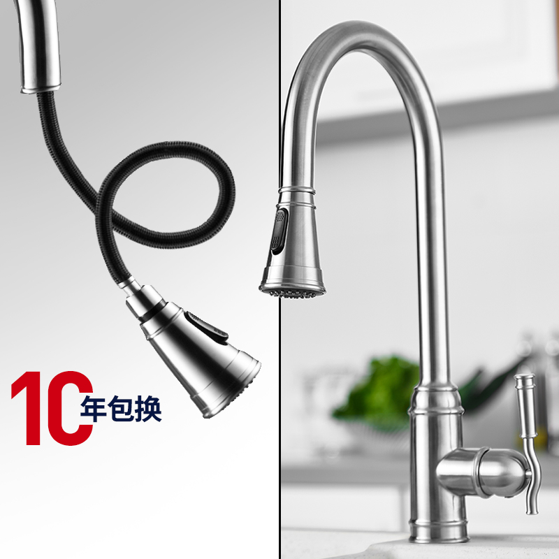 ten thousand Conn 304 stainless steel American kitchen tap Home washing basin with drawable dishwashbasin hot and cold single handlebar