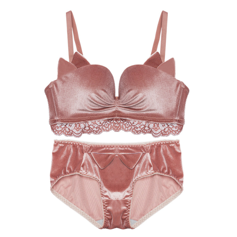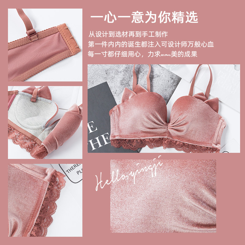 Sakura season playful and cute cat ears half cup velvet bra gather small chest girl underwear without steel ring push-up bra