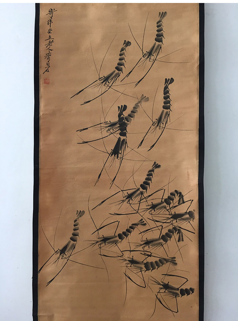 Antique made old famous man character painting ancient painting country painting parlor painting living room office decoration hanging painting and shrimp anecdotzi white stone-Taobao