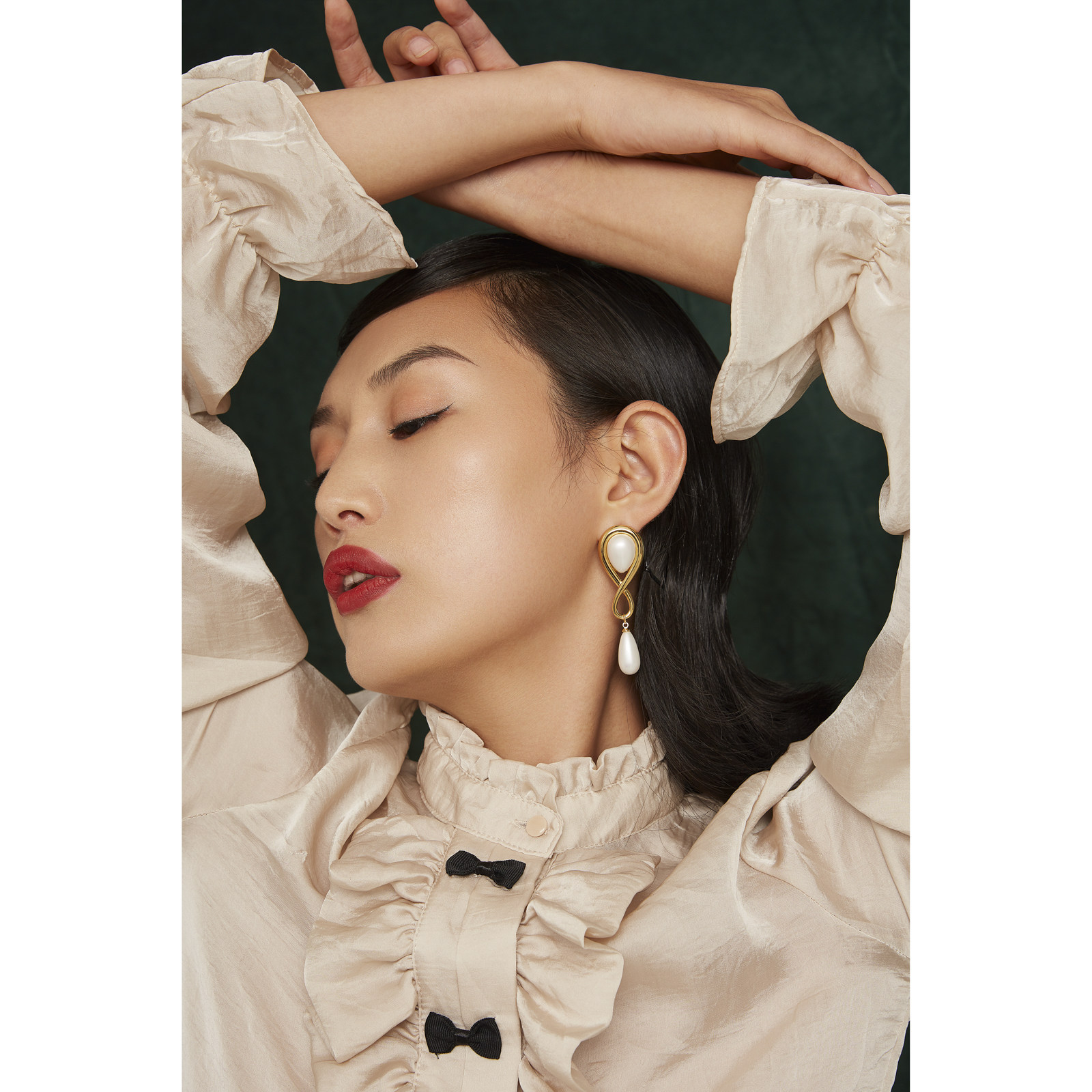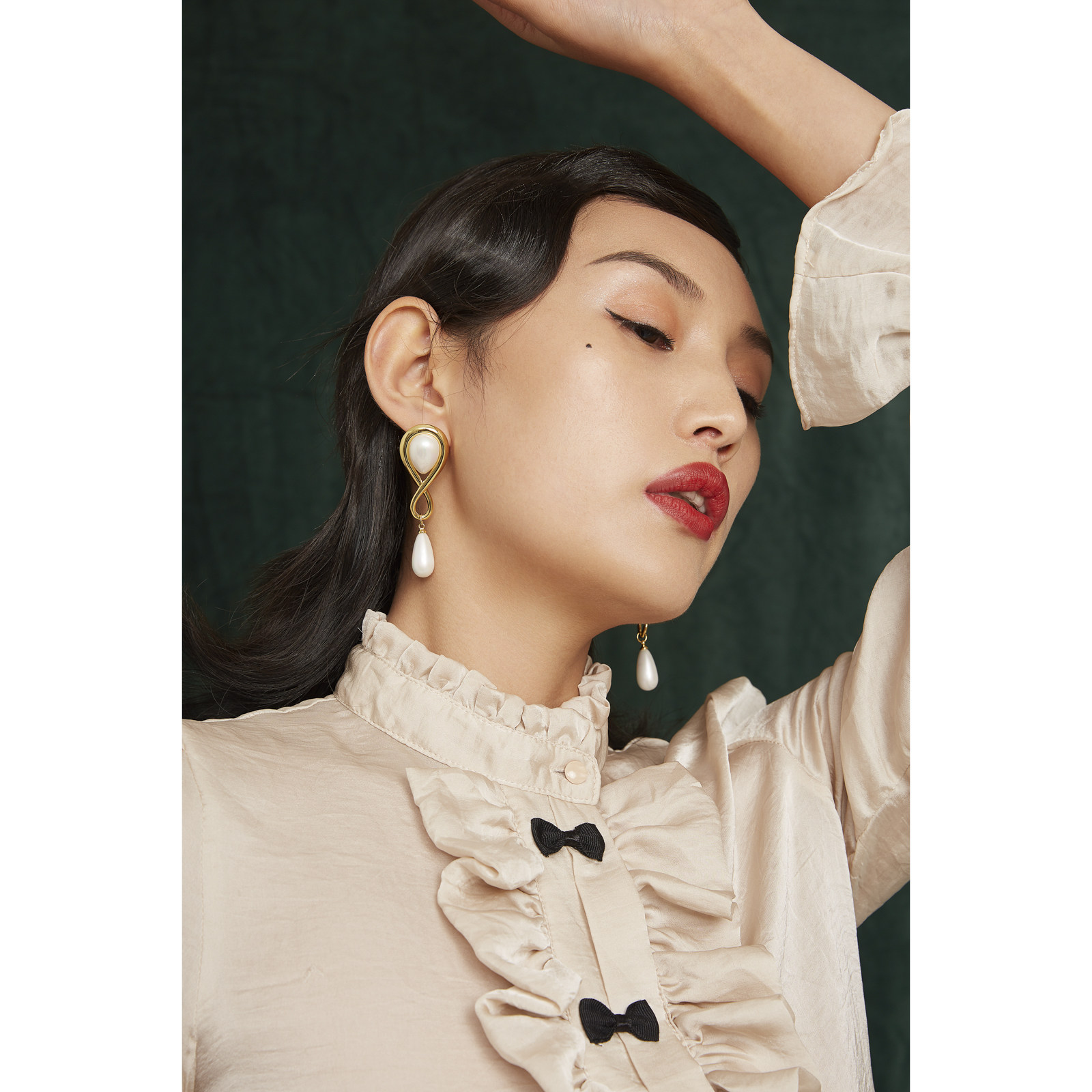 Original retro pearl imitation Mabe water drop 925 silver needle earrings ear clip vintage palace high sense Hepburn