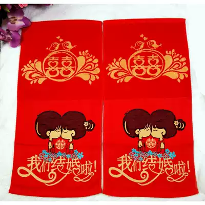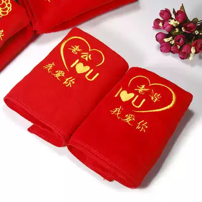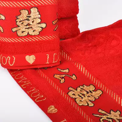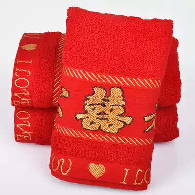Wedding towel washing double happiness pure cotton one-color cartoon supplies package couple wedding big red gift embroidery