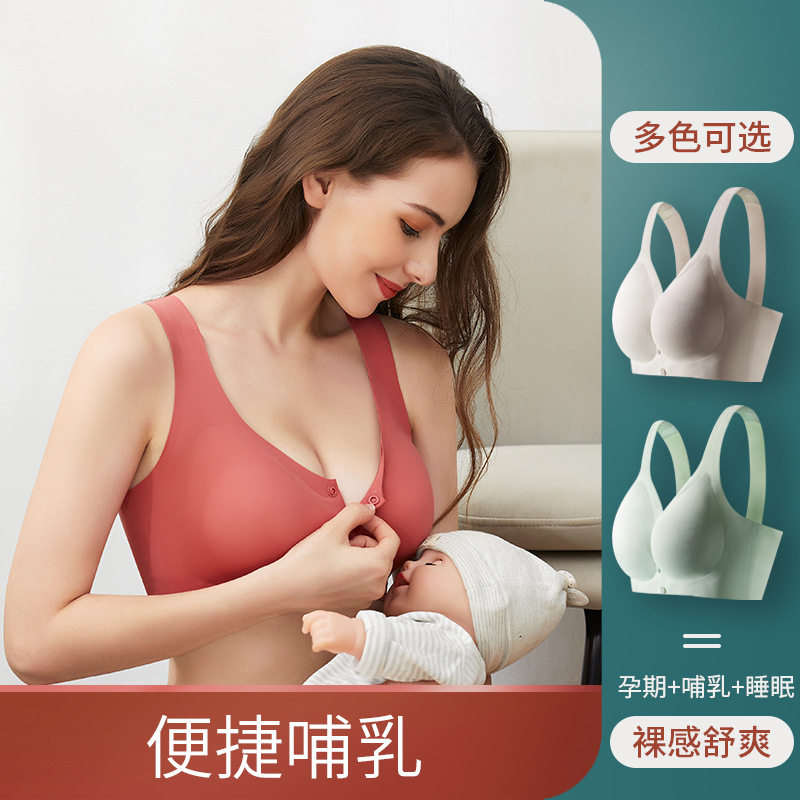 Lactation-feeding bra lactation underwear dedicated summer thin ice wire without trace front buckle bra during pregnancy