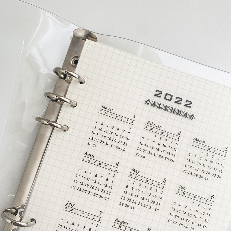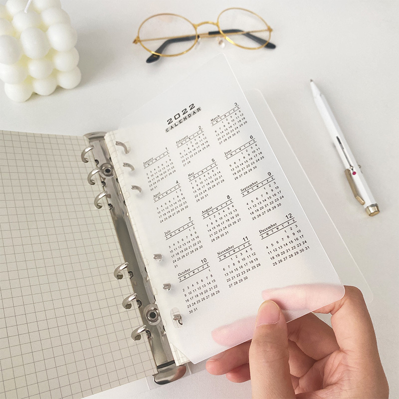 Calendar 2022 Calendar A5A6 Standard 6 holes Hand ledger loose-leaf This year Calendar Sepp Board Handbill Notes PP Transparent Base Plate