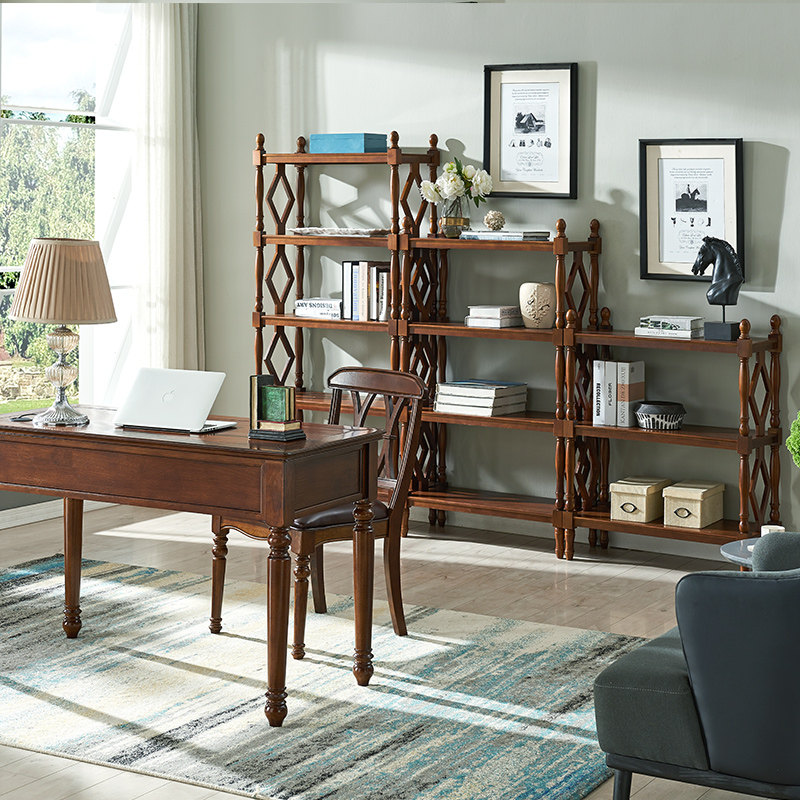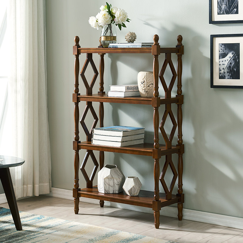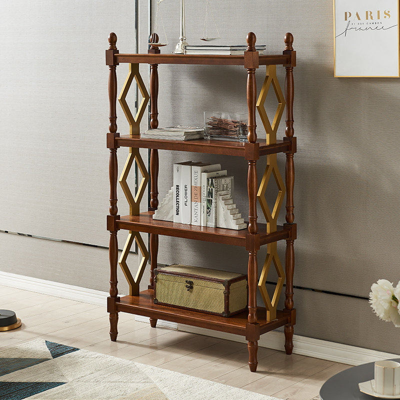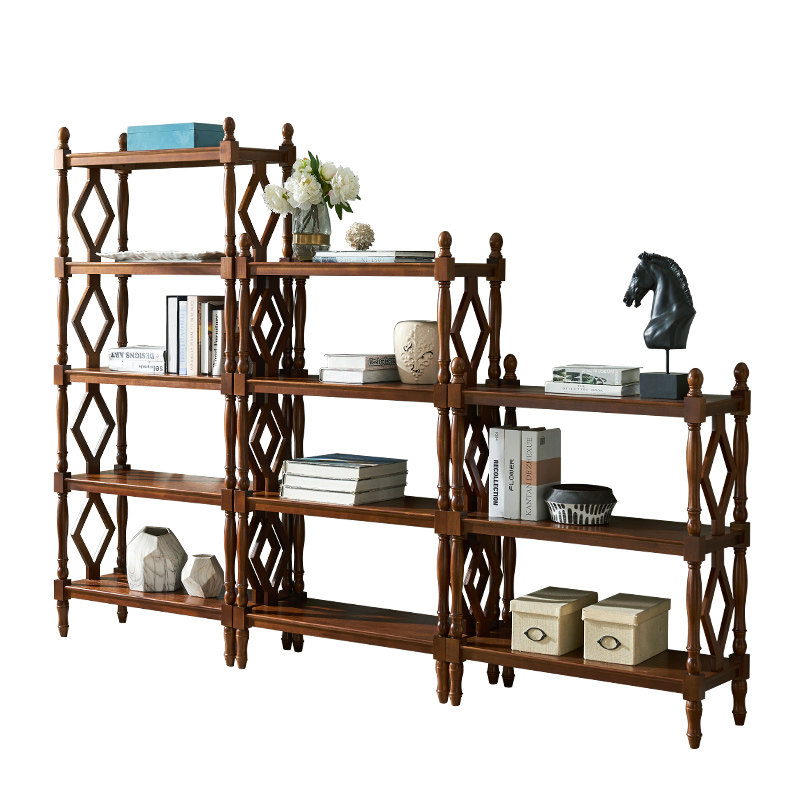 American rural solid wood multilayer frame European-style retro bookshelf on floor shelf Living room Xuanguan Decorative Shelf Display Cabinet