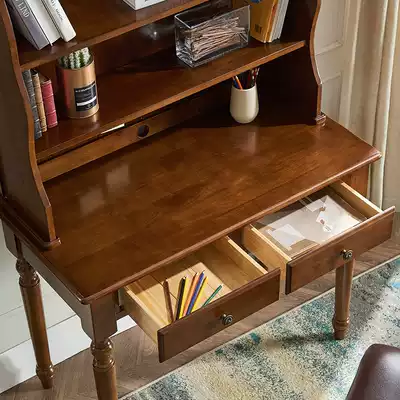 American solid wood desk bookshelf combination simple modern student computer desk European bookcase integrated light luxury desk