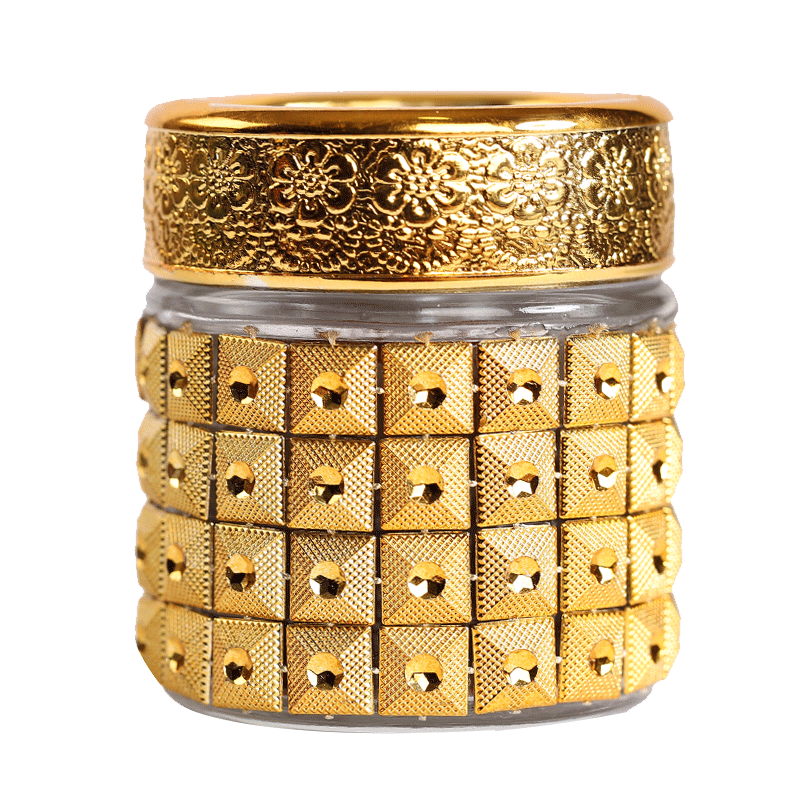 A golden jar of red flowers and a red flower.