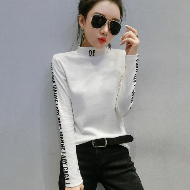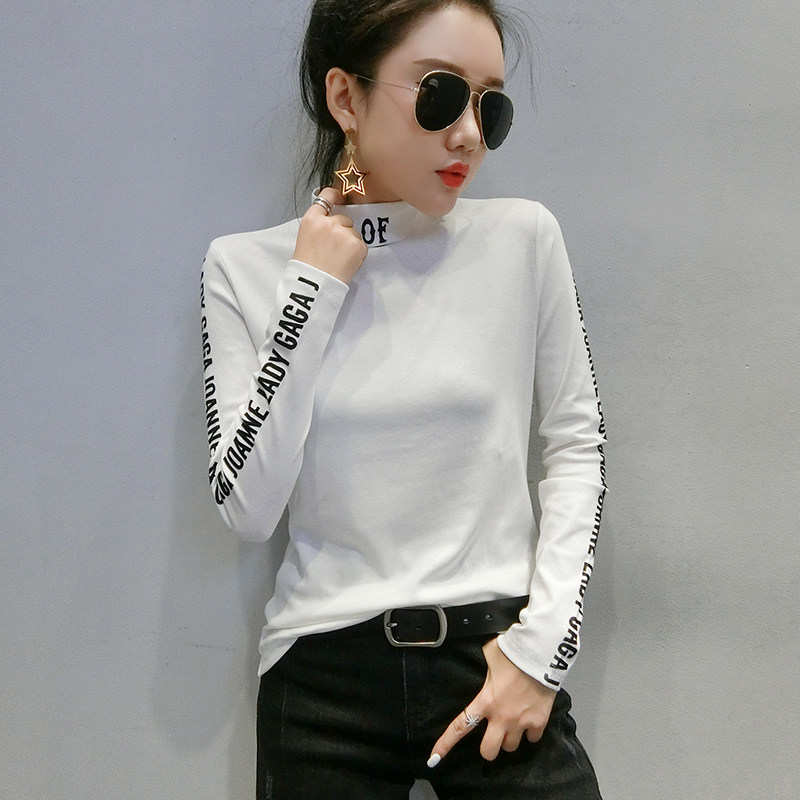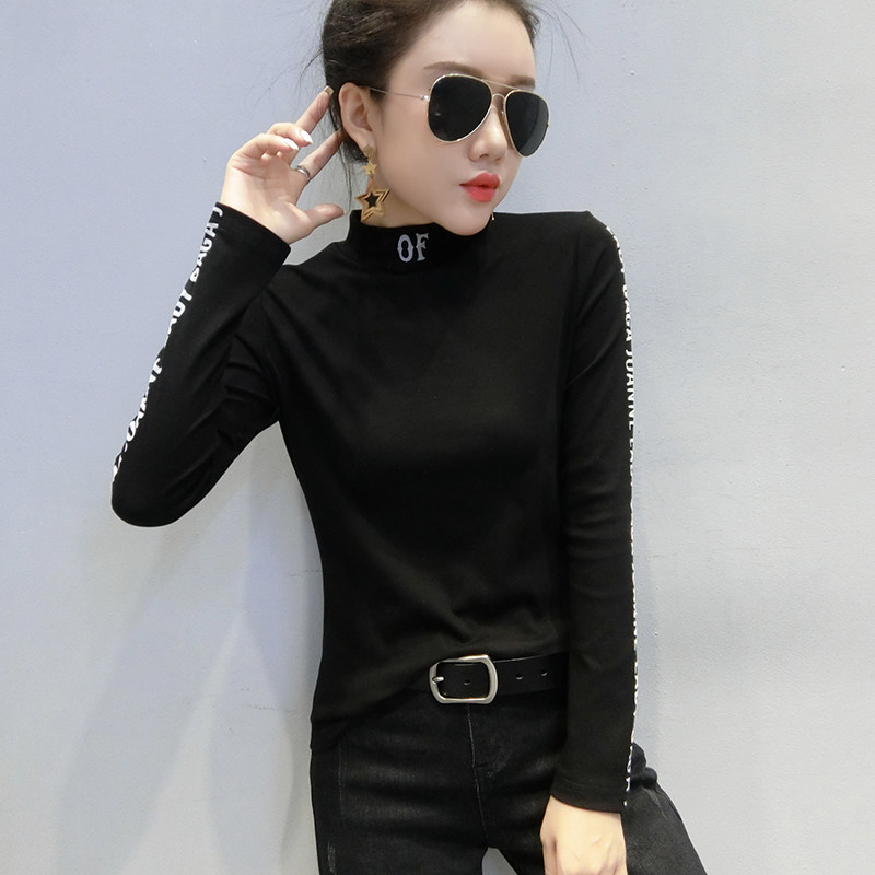 Thickened brushed bottoming shirt women's inner wear autumn and winter new half turtleneck letter T-shirt women's long-sleeved slim-fit Western-style top