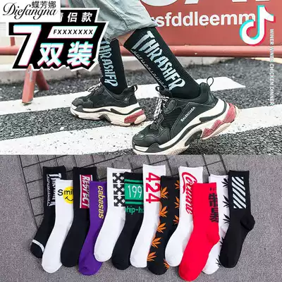 ins black socks men's long tube fashion basketball sports high tube Harajuku spring summer junior high school students