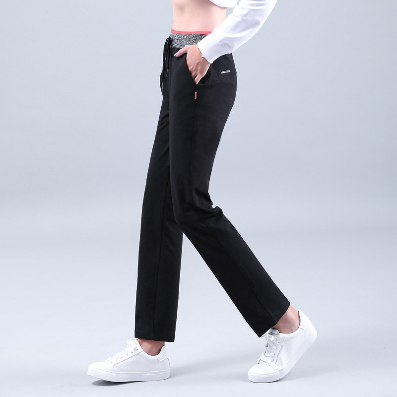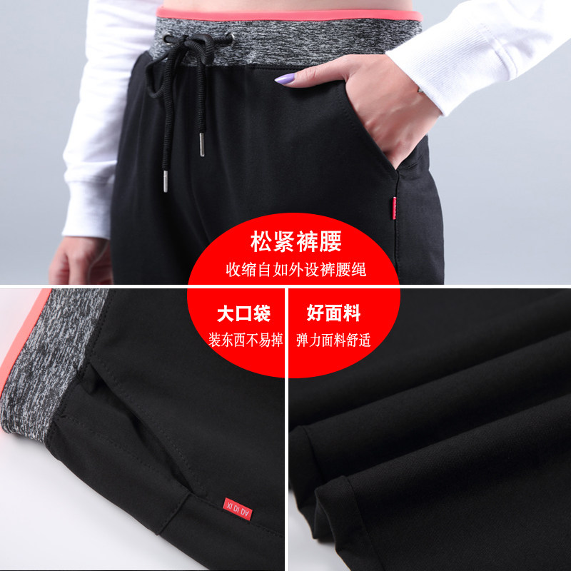 Spring and autumn sports pants women's straight high waist cotton loose thin large size knitted wild casual thick cotton pants Korean version