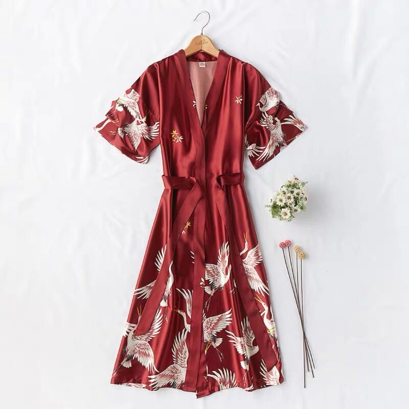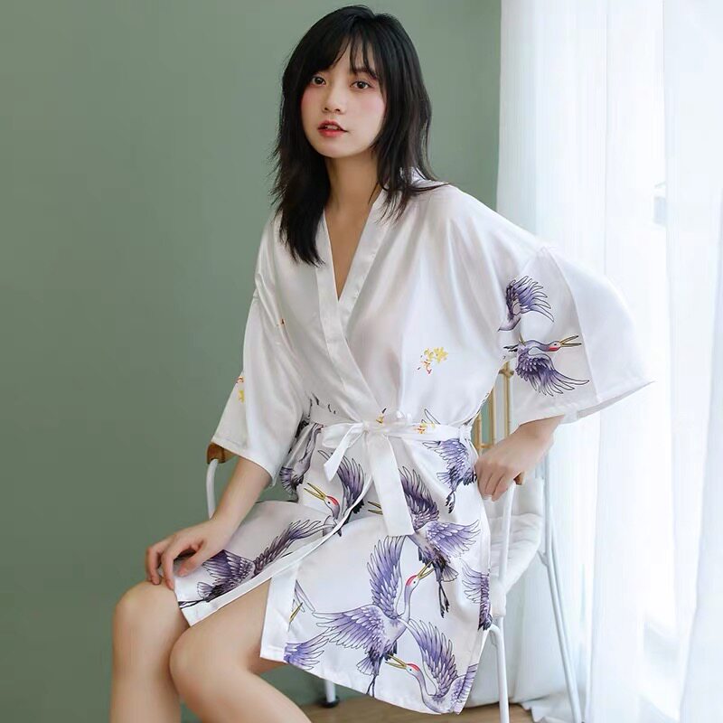 Wedding Sleepwear Woman Summer Middle Sleeve Bridal Gown Big Code Bridesmaid Sleeping Robe Fairy Crane Bathrobe-Taobao