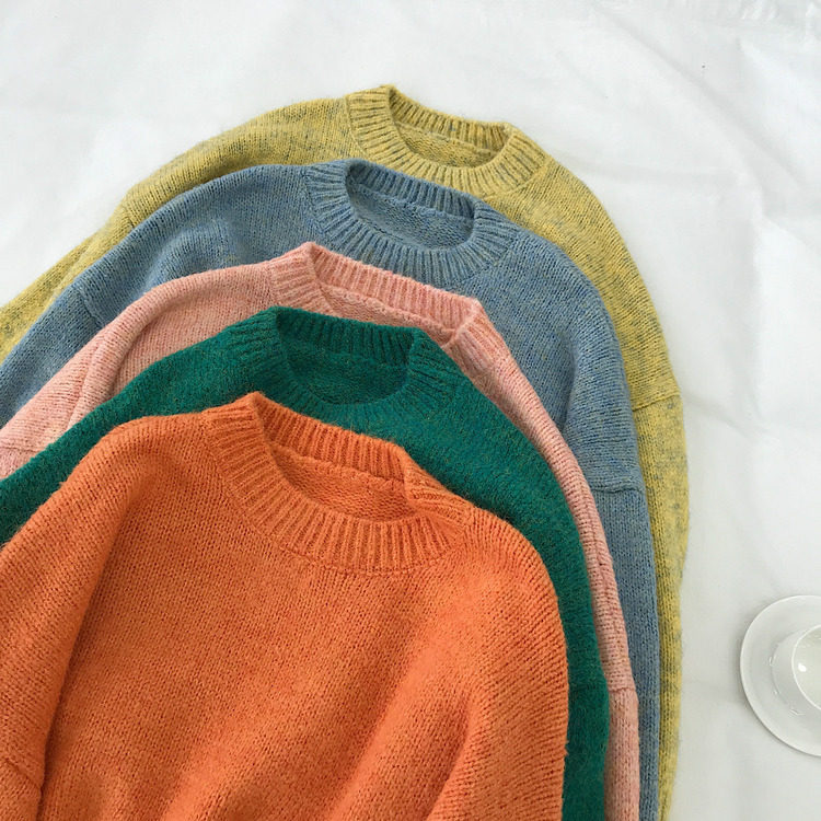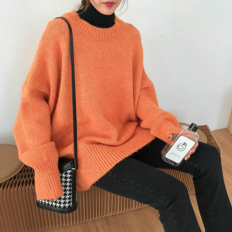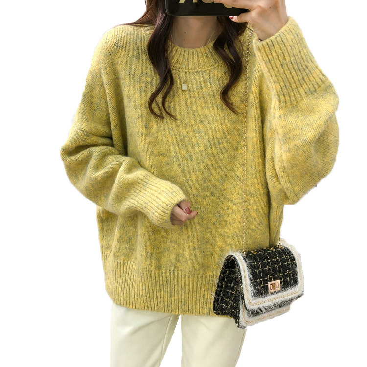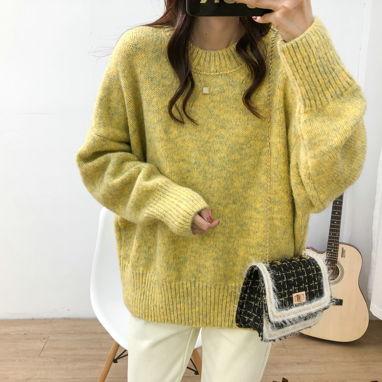 Lazy all-match round neck sweater women's 2022 spring and autumn new Korean version large size loose and thin long-sleeved knitted sweater coat