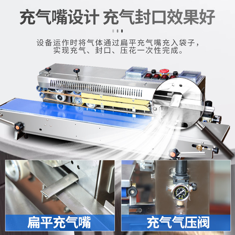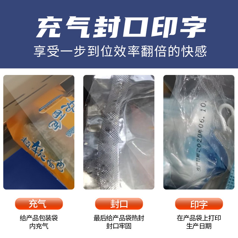 1010 nitrogen filling continuous sealing machine Commercial small tea food packaging bag bread inflatable packaging machine