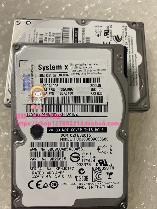IBM System X3650M5 x3550M5 hard drive 00AJ096 0097 300G with the mounting frame