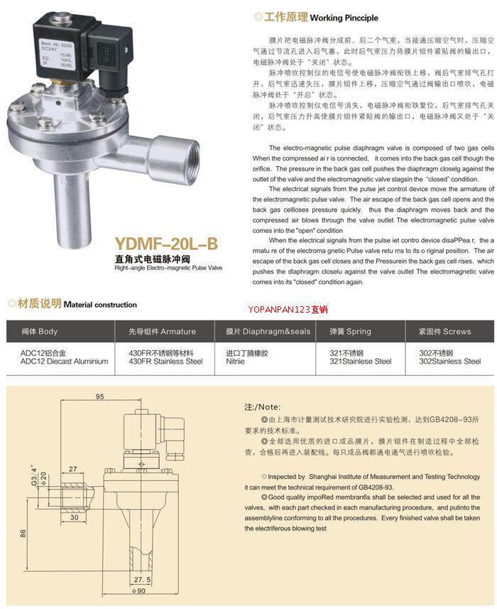 Shanghai bag-type right angle electromagnetic pulse valve DMF-Z-20A 25 40 45DD Pneumatic dust blower 1 inch DN