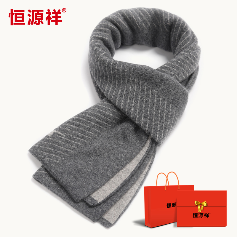 Hengyuanxiang 100% pure cashmere men's scarf men's high-end simple all-match British business winter warm gift box