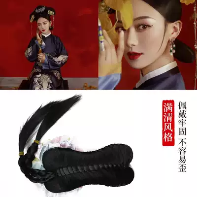 Costume wig Flag head wig Ancient Qing Dynasty Gege Dovetail bun Court flag head accessories Bride Xiuhe Dovetail