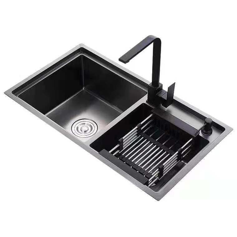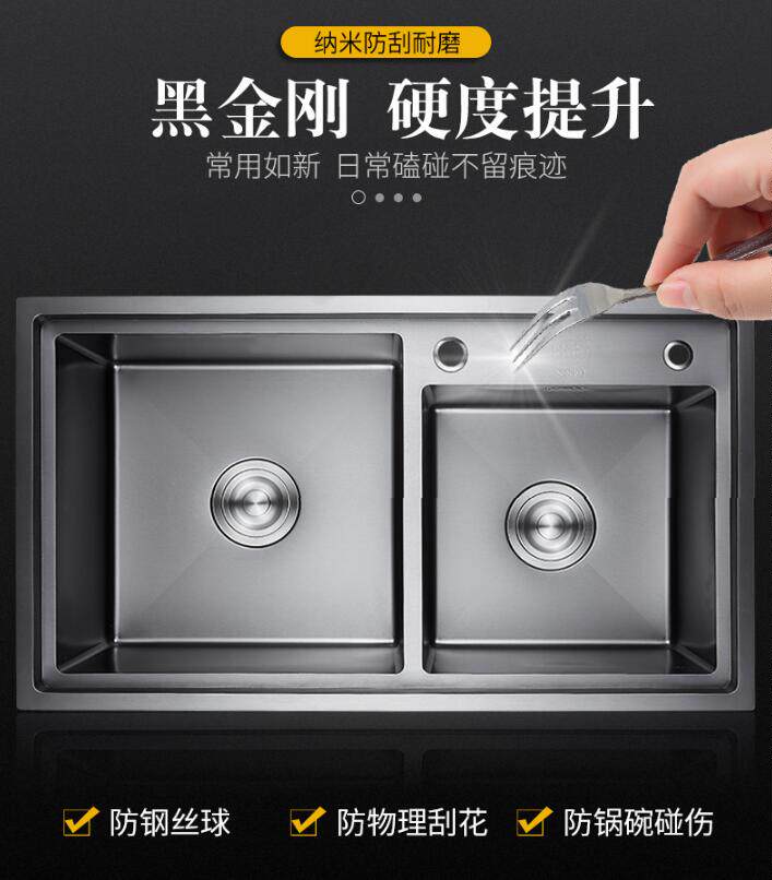 Black nano sink Double sink high-side retaining water with card slot washing basin Stainless steel manual thickening washing basin sink