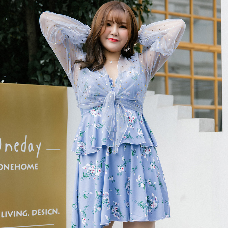 The new large size swimsuit two-piece chubby mm200 catty overt large number three sets long sleeves anti-high waist cover